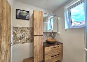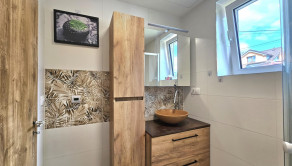 Dispozícia prízemia: vstupná veranda, chodba, kuchyňa, izba, sklada a technická miestnosť; poschodie: 3 izby, átrium a kúpeľňa. Dom je napojený na elektrinu, obecný vodovod, septik. Počas rekonštrukcie kúrenie el. konvektormi a pecou na tuhé palivo, ohrev vody zabezpečuje bojler.