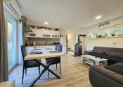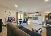 Denná časť: Otvorený koncept obývacej izby prepojený s kuchyňou a jedálňou. Dominantou sú veľkoformátové francúzske okná, ktoré vťahujú prírodu priamo do interiéru.